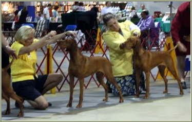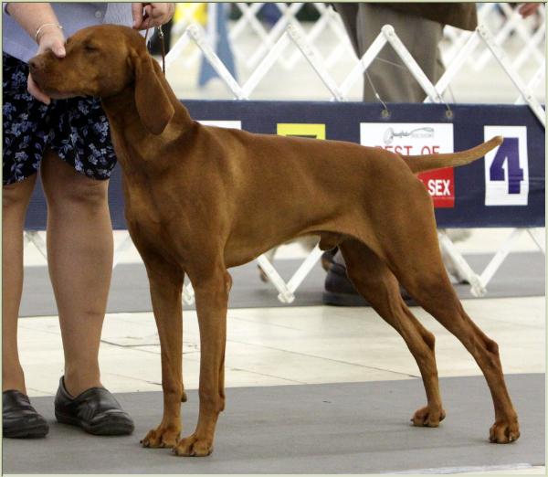 | BISS GCH CH Vizcaya's Fantasy Finish "Folsom" Hips VZ-11426G24M-PI "Good" M-BISS CH Encounter A Duke Fantasy "Duke" (A Top 2 Vizsla!) X CH Vizcaya's Vilettia Bella "Bella" Breeder: Daryl Schaal & Nancy Edmunds Owners: Randy & Felicia Goodman and Nancy Edmunds Like Father, like Son... 4TH Generation BISS! Folsom was expertly handled by Dana Smoak & Nancy Edmunds. Thanks Dana for presenting this boy to his Championship, Grand Championship and beyond with such expertise! Folsom took 1st in the Stud Dog Class with kids Cisco and Ember, at both of the Vizsla Club of the Carolinas Specialties on July 25 & 27, 2013! |