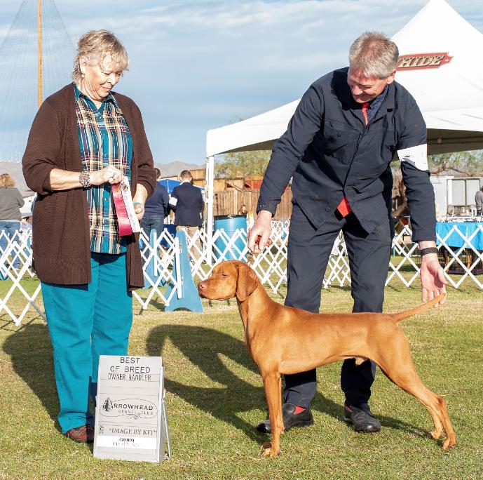 | HONORABLE MENTION Choctaw is Owner Handled by Richard Graves (unless noted otherwise). 01/12/2019, Conformation Debut, 4-6 Month Puppy, BEST PUPPY BREED & BEST PUPPY GROUP 1, Long Beach Kennel Club, Industry CA 04/06/2019, Puppy 6-9 Months Dogs, 1st Place, WINNERS DOG, Apple Valley Kennel Club, Victorville CA 04/07/2019, Puppy 6-9 Months Dogs, 1st Place, WINNERS DOG & BEST OF OPPOSITE (for his 1st point), Apple Valley Kennel Club, Victorville CA 04/14/2019, Puppy Match, 1st in Class, BEST PUPPY BREED & PUPPY SPORTING GROUP 2! Owner Handled by Rich Graves, Lomita Obedience Training Club, Lomita CA 04/18/2019, Puppy 6-9 Months Dogs, 2nd Place, Conejo Kennel Club, Inc., City of Industry CA 04/19/2019, Puppy 6-9 Months Dogs, 1st Place, WINNERS DOG & BEST OF WINNERS, Conejo Kennel Club, Inc., City of Industry CA 04/20/2019, Puppy 6-9 Months Dogs, 1st Place, WINNERS DOG, Handled by Louise Brady, Angeles Canyon Dog Club, City of Industry CA 04/21/2019, Puppy 6-9 Months Dogs, 1st Place, WINNERS DOG & BEST OF WINNERS, Handled by Louise Brady, Angeles Canyon Dog Club, City of Industry CA 05/12/2019, Puppy 6-9 Months Dogs, RESERVE WINNERS DOG, Ventura Co. Dog Fanciers Assoc., Ventura CA 05/17/2019, Puppy 6-9 Months Dogs, 1st Place, SWEEPSTAKES, Vizsla Club Of Northern California, Show #1, Vallejo CA 05/17/2019, Puppy 6-9 Months Dogs, 1st Place, SPECIALTY, Vizsla Club Of Northern California, Show #1, Vallejo CA 05/17/2019, Puppy 6-9 Months Dogs, 1st Place, SPECIALTY, Vizsla Club Of Northern California, Show #2, Vallejo CA 05/18/2019, Choctaw is recognized by AKC as a PUPPY OF ACHIEVEMENT (POA), at the tender age of 9 months old! 05/18/2019, Puppy 6-9 Months Dogs, 1st Place, Coyote Hills Kennel Club, Vallejo CA 05/19/2019, Puppy 9-12 Months Dogs, 2nd Place, Coyote Hills Kennel Club, Vallejo CA 05/23/2019, Puppy 9-12 Months Dogs, 1st Place, Southern Calififornia Sporting Dog Fanciers, Pomona CA 05/23/2019, Puppy 9-12 Months Dogs, 1st Place, SWEEPSTAKES, Southern California Sporting Dog Fanciers, Pomona CA 05/24/2019, Puppy 9-12 Months Dogs, 1st Place, WINNERS DOG, San Fernando Kennel Club, Pomona CA 05/26/2019, Puppy 9-12 Months Dogs, 1st Place, WINNERS DOG & BEST OF WINNERS, Major!, Los Encinos Kennel Club, Pomona CA 05/27/2019, Puppy 9-12 Months Dogs, 1st Place, WINNERS DOG, BEST OF WINNERS & NOHS BEST OF BREED/OWNER HANDLED, Antelope Valley Kennel Club, Pomona CA 06/02/2019, Puppy 9-12 Months Dogs, 1st Place, Kennel Club of Pasadena, Pasadena CA 06/22/2019, Puppy 9-12 Months Dogs, 1st Place, SPECIALTY, South Coast Vizsla Specialty, City of Industry CA 06/22/2019, Puppy 9-12 Months Dogs, 1st Place, SWEEPSTAKES, South Coast Vizsla Specialty, City of Industry CA 06/22/2019, Puppy 9-12 Months Dogs, 1st Place, WINNERS DOG & BEST OF WINNERS, 4 Point Major! Malibu Kennel Club, City of Industry CA 06/23/2019, Puppy 9-12 Months Dogs, 2nd Place, SWEEPSTAKES, Vizsla Club of Southern California, City of Industry CA 06/23/2019, SELECT DOG, Malibu Kennel Club, City of Industry CA 07/05/2019, Puppy 9-12 Months Dogs,1st Place, RESERVE WINNERS DOG, Channel City Kennel Club, Camarillo, CA 07/13/2019, Puppy 9-12 Months Dogs, 2nd Place, SWEEPSTAKES, Vizsla Club of Illinois, Belvidere IL 07/13/2019, Open Dogs, 2nd Place, SPECIALTY, Vizsla Club of Illinois & Kishwaukee Kennel Club, Belvidere IL 07/14/2019, Puppy 9-12 Months Dogs,1st Place, BEST IN SWEEPSTAKES, Vizsla Club of Illinois, Belvidere IL 07/14/2019, Open Dogs,1st Place, WINNERS DOG & BEST OF WINNERS, SPECIALTY, Vizsla Club of Illinois & Kishwaukee Kennel Club, Belvidere IL, NEW CHAMPION (CH) TITLE at the tender age of 10 months old! 09/29/2019, BEST OF OPPOSITE, NOHS BEST OF BREED/OWNER HANDLED AND GROUP 1/OWNER HANDLED, Santa Ana Valley Kennel Club, Industry CA 10/12/2019, SELECT DOG, 3 Point Major!, Judge Mrs. Beverly Andersen, Black Mountain Kennel Club, Henderson NV 10/13/2019, SELECT DOG, 3 Point Major!, Judge Mrs. Pamela S. Lambie, Black Mountain Kennel Club, Henderson NV 11/10/2019, Junior 12 & under 15 Months, 1st Place, Judge Mr. Thomas Schulz, SWEEPSTAKES, Rio Salado Vizsla Club, Inc., Tucson AZ 11/10/2019, SELECT DOG, 4 Point Major!, and made the cut for BISS, Judge Mr. Gordon William Hayburn, SPECIALTY, Rio Salado Vizsla Club, Inc., Tucson AZ 11/10/2019, SELECT DOG, 4 Point Major!, NOHS; OWNER HANDLER BEST OF BREED, OWNER HANDLED GROUP 1, Judge Ms. Helen Dorrance, Madera Kennel Club , Tucson AZ 11/24/2019, Choctaw wins his 1st BEST OF BREED, Judge Mrs. Kathleen Carter, Arrowhead KC, Chandler AZ, and goes on to win NOHS; OWNER HANDLER BEST OF BREED and OWNER HANDLED GROUP 2 under same judge! 01/04/2020, BEST IN SWEEPSTAKES, Judge Mrs. Linda Durham , South Coast Vizsla Club, Indio CA 01/12/2020, SELECT DOG, Judge Mrs. Faye Strauss, Long Beach Kennel Club, City of Industry CA 01/19/2020, BEST OF BREED, OWNER HANDLED BEST OF BREED, OWNER HANDLED GROUP 2, Judge Mrs. Anne S. Katona, Los Encinos Kennel Club, Ventura CA 02/29/2020, SELECT DOG, Judge Mr. Rick Gschwender, Superstition Kennel Club Inc., Phoenix AZ 03/01/2020, SELECT DOG, Judge Col Joe B. Purkhiser, Superstition Kennel Club Inc., Phoenix AZ NEW GRAND CHAMPION (GCH) TITLE! 10/17/2020, SELECT DOG, Judge Mrs. Cathie A. Turner, Southern California Sporting Dog Fancier's, Temecula CA 11/06/2020, SELECT DOG, Judge Mrs. Karin Ashe, Madera Canyon Kennel Club, Tucson AZ 11/07/2020, SELECT DOG, Judge Ms. Bonnie Linnell Clarke, Madera Canyon Kennel Club, Tucson AZ 11/08/2020, BEST OF BREED, OWNER HANDLED BEST OF BREED, OWNER HANDLED GROUP 2! Breed Judge Mrs. Cathie Turner & Sporting Group Judge Mrs. Cathie Turner, Canada del Oro Kennel Club, Tucson AZ 11/09/2020, BEST OF OPPOSITE, OWNER HANDLED BEST OF BREED, OWNER HANDLED GROUP 4!, Breed Judge Mr. Robert Shreve & Sporting Group Judge Miss Cindy Partridge, Canada del Oro Kennel Club, Tucson AZ 11/23/2020, SELECT DOG & OWNER HANDLED BEST OF BREED, Judge Mr. Harry (Butch) H. Schulman, Arrowhead Kennel Club (2), Chandler AZ 05/22/2021, BEST OF OPPOSITE, O
