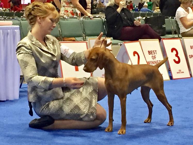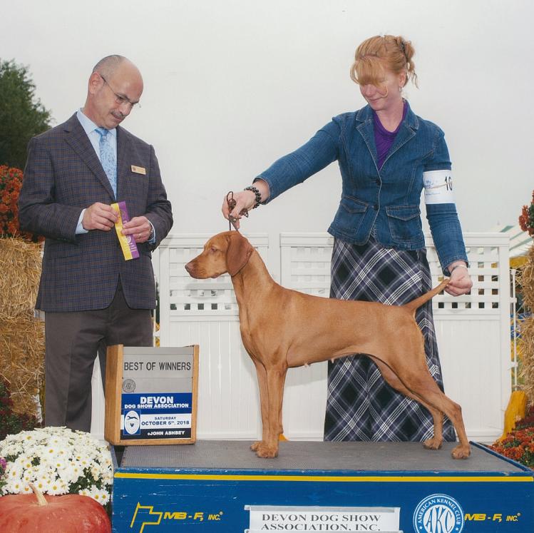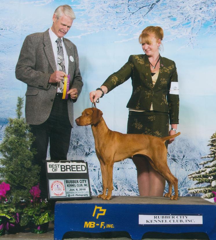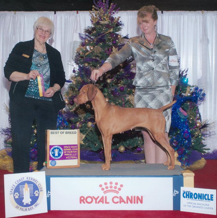 | July 14th, 2018, Vizsla Club of Greater Cleveland, Madison OH, Judge Mrs. Betsy A. Yates Monkey wins her second BEST IN SPECIALTY SHOW! Less then 1 month earlier... June 16th, 2018, Tampa Bay Vizsla Club Specialty, Tampa FL, Judge Robert P. Ritchie, Monkey wins her first BEST IN SPECIALTY SHOW! |