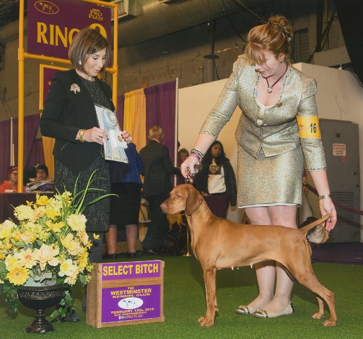 | "Monkey" - Expertly Owner Handled By Ashley Craig Watkins 2xBISS GCHS Am/Int CH Pinewood N Pura Vida's Playing With Fire AKC Natl AOM 2019 Westminster Top 5 Breed Invitee Monkey wins Select Bitch at the Westminster Dog Show - 2019! Number 1 "Female Vizsla" in the Country - 2018! Source: Canine Chronicle, as of 12/31/2018. 2x Best In Specialty Show Winner (2xBISS), Silver Grand Champion (GCHS), Am/Int Champion, Group Winning, Multiple Group Placing, Multiple Best Of Breed Winning and AKC National Award Of Merit. Monkey is the 6th Generation "in a row" to win a Best In Specialty Show (BISS). Monkey wins 2x Best In Specialty Show at the tender age of 2 years & 5 months and 2 years & 6 months! Titles Attained; Silver Grand Champion (GCHS) and American/International Champion (Am/Int CH). |