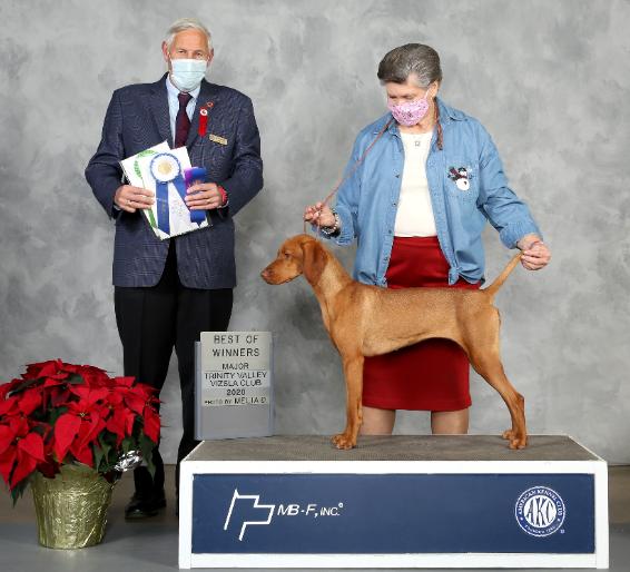 | Eleanor - Pinewood N Pura Vida's Coming In Hot POA, AOM Breeder/Owner: Jessica Sykora "Pura Vida Vizslas" Honorable Mention: Specialty Winning, Specialty Award Of Merit (AOM), Puppy Of Achievement (POA) title. Eleanor's Photo Album Pedigree 10/15/2020, Eleanor's debut she wins Reserve Winners Bitch, Judge Mrs Suzanne Dillin, Handler Karen Newman PHA, Stephenville Knl Club of Texas Inc., Belton TX 12/03/2020, Winners Bitch, Best Of Winners & Award Of Merit! 3 Point Major! Judge Mr. Brian Meyer, Handler Karen Newman PHA, Trinity Valley Vizsla Club Specialty, Dallas TX 01/09/2021, Winners Bitch, 4 Point Major!, Judge Desmond J Murphy, Handler Karen Newman PHA, Nolan River KC, Glen Rose TX 01/10/2021, Reserve Winners Bitch, Judge Mrs. Debra L. Thornton, Handler Karen Newman PHA, Nolan River KC, Glen Rose TX 01/11/2021, Reserve Winners Bitch, Judge Mrs Danelle M Brown, Handler Karen Newman PHA, Nolan River KC, Glen Rose TX 01/14/2021, Winners Bitch & Best Of Winners, 2 Points!, Judge Mrs. Danelle M. Brown, Handler Karen Newman PHA, Corpus Christi Kennel Club, Inc., Sinton TX 01/15/2021, Reserve Winners Bitch, Judge Mr. Del Richards, Handler Karen Newman PHA, Corpus Christi Kennel Club, Inc., Sinton TX 01/16/2021, Winners Bitch, 2 Points!, Judge Ms. Gloria Kerr, Handler Karen Newman PHA, Corpus Christi Kennel Club, Inc., Sinton TX 01/17/2021, Winners Bitch, 2 Points! Judge Ms. Kimberly Anne Meredith, Handler Karen Newman PHA, Corpus Christi Kennel Club, Inc., Sinton TX Eleanor has returned to the ring (after the Covid19 Pandemic closing) & winning! We look forward to updating her titles! |