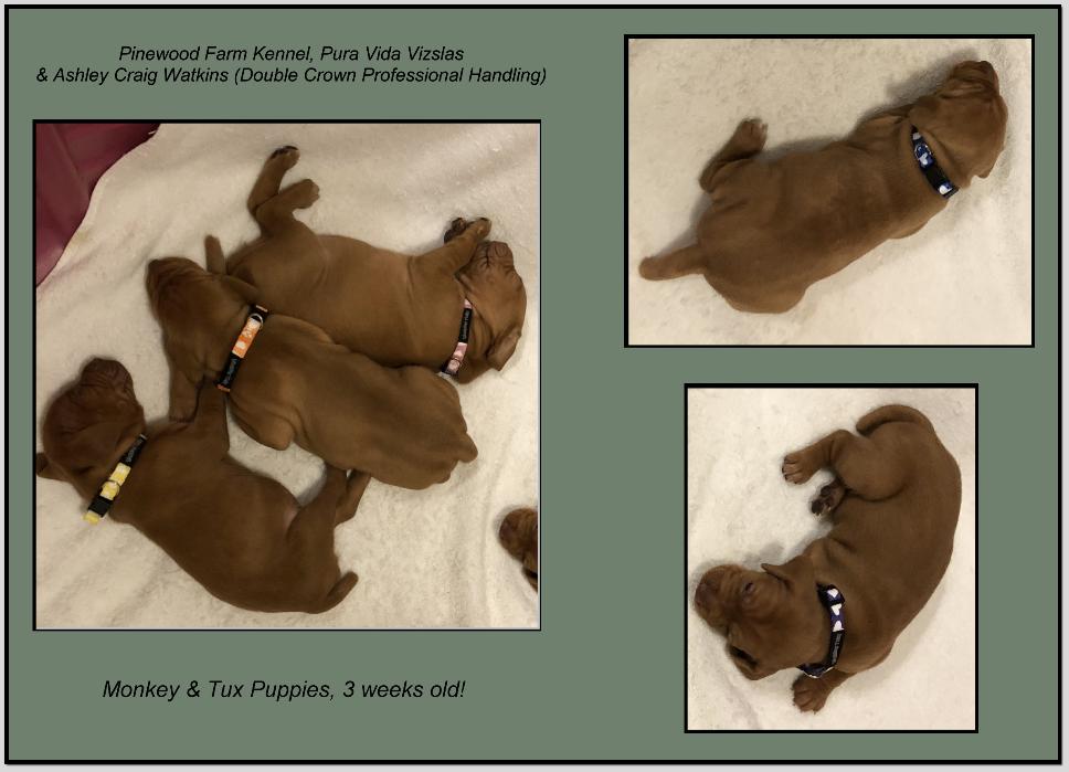 | Introducing the KIDS & their owners... Eleanor - Pinewood N Pura Vida's Coming In Hot POA, AOM Owner: Jessica Sykora "Pura Vida Vizslas" Toddy - Pinewood N Pura Vida's Hot Toddy At Vizcaya Owners: Nancy Edmunds "Vizcaya Vizslas" and Helene Guida "Pinewood Farm Kennel" Lexi - Pinewood N Pura Vida's Hot Flying Monkey Owner: Ashley Craig Watkins "Double Crown Professional Handling" Rosie - Pinewood N Pura Vida's Hot Summer Nights Owners: Sophia & Christine Whitman and Corinne Miklos "Grouse Point Vizslas" Andrew - Pinewood N Pura Vida's Hot Topic At Grouse Point Owners: Robin Bernstein and Corinne Miklos "Grouse Point Vizslas" |
