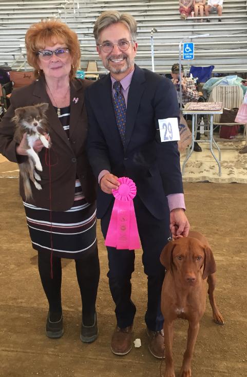 | Best Of Breed Winning Breed: Long Coat Chihuahua/Chocolate Blue AKC#: TS31784404 DOB: 10/28/2016 Sire: Sarita's Bentley The Snow Bear Dam: Sarita's Black Magic Woman Breeder: Sarah C. Fausel Owner: Ed and Beverley Wanjon |