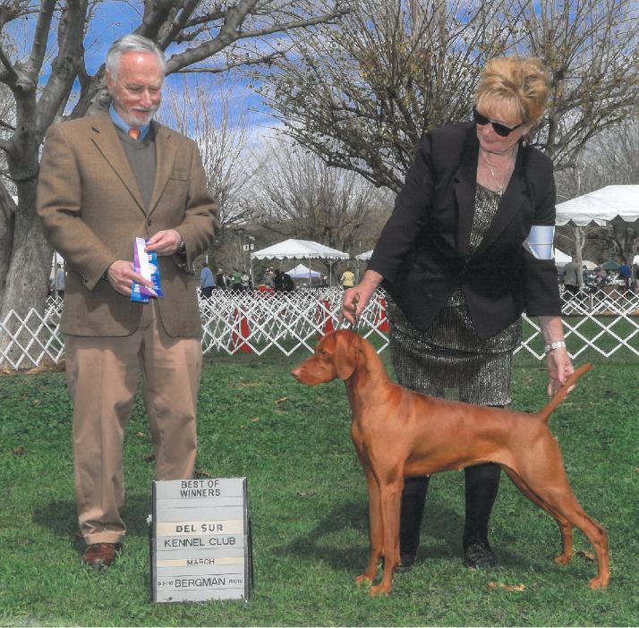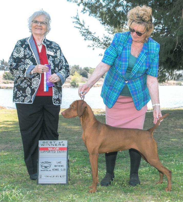 | HONORABLE MENTION: 01/06/2018, American Bred Bitches, 1st Place, SPECIALTY, South Coast Vizsla Club & Kennel Club of Palm Springs, Indio CA 01/07/2018, American Bred Bitches, 1st Place, RESERVE WINNERS BITCH, SUPPORTED ENTRY, Kennel Club of Palm Springs, Indio CA 01/20/2018, Open Bitches, 1st Place, WINNERS BITCH & BEST OF OPPOSITE, San Fernando Kennel Club, Ventura CA 01/21/2018, Open Bitches, 1st Place, WINNERS BITCH, Ventura Co. Dog Fanciers Association, Ventura, CA 02/24/2018, Open Bitches, 2nd Place, RESERVE WINNERS BITCH, Silver Bay Kennel Club, Del Mar CA 02/25/2018, Open Bitches, 4th Place, Silver Bay Kennel Club, Del Mar CA 03/17/2018, Open Bitches, 1st Place, WINNERS BITCH & BEST OF WINNERS, Del Sur Kennel Club, Valley Center CA 03/18/2018, Open Bitches, 1st Place, WINNERS BITCH & BEST OF WINNERS, Del Sur Kennel Club, Valley Center CA 4/21/2018, Open Bitches, RESERVE WINNERS BITCH, Angeles Canyon Dog Club, City of Industry CA 4/22/2018, Open Bitches, RESERVE WINNERS BITCH, Angeles Canyon Dog Club, City of Industry CA 04/28/2018, Open Bitches, 1st Place, WINNERS BITCH & BEST OF WINNERS, Major! Supported Entry! Lake Matthews Kennel Club, Chino CA 04/28/2018, Open Bitches, 2nd Place, South Coast Vizsla Club, Chino CA 04/29/2018, Open Bitches, 4th Place, Lake Matthews Kennel Club, Chino CA 05/26/2018, Open Bitches, 1st Place, Los Encinos Kennel Club, Pomona CA 05/27/2018, Open Bitches, 3rd Place, Antelope Valley Kennel Club, Pomona CA 06/30/2018, Open Bitches, 2nd Place,The Burbank Kennel Club, City of Industry CA 07/01/2018, Open Bitches, 1st Place, WINNERS BITCH, BEST OF WINNERS & BEST OF BREED, The Burbank Kennel Club, City of Industry CA 08/25/2018, Open Bitches, 1st Place, WINNERS BITCH & BEST OF WINNERS, Santa Barbara Kennel Club, Inc., Santa Barbara CA 08/26/2018, Open Bitches, 3rd Place, Santa Barbara Kennel Club, Inc., Santa Barbara CA 09/22/2018, Open Bitches, 1st Place, WINNERS BITCH & BEST OF WINNERS, Santa Ana Valley Kennel Club, City of Industry CA, NEW CHAMPION! 06/01/2019, SELECT BITCH, Kennel Club of Pasadena, Pasadena CA 06/02/2019, SELECT BITCH, Kennel Club of Pasadena, Pasadena CA |