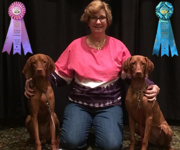 | May 3, 2016, VCA National Events - Futurity 6-9 Puppy Class Serenity’s Ladies Love Cool Jack "Jack" (left of Vicki) placed 4th & Serenity's Red Rocks "Sedona" (right of Vicki) placed 1st!  |