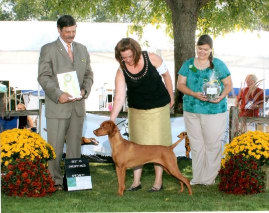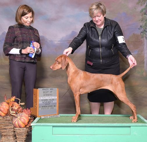 | Multiple Best Of Breed Winning & OH Group 4 Multiple Best Of Opposite & Sweepstakes Winning CH Kizmar Doran Look What You Started JH Call Name: Nessa AKC#: SR87297103 DNA#: V765904 OFA# Hip Score: VZ-15110G29F-VPI "Good" OFA: Elbows, Thyroid: Normal Owners: Kym Fisher and Kathy Rust Pedigree Honorable Mention Best Puppy in Sporting Group 1 May 2016: VCA Futurity/Maturity Program - 4th Place 12-15 month CWVC Specialty - Best Opposite to Best in Sweepstakes June 2, 2017: Fargo Moorehead Kennel Club, Best Of Breed over Specials (1/W/BB/BW/BOBOH/OHG4) June 18, 2017: Fort Dodge Kennel Club, Inc. - Best Of Winners/Best Of Opposite (1/W/BW/OS) October 2017: TCVC Hunt Test, achieved her JUNIOR HUNTER (JH)! November 19, 2017: Minneapolis Kennel Club, Winners Bitch & Best Of Winners, major win! NEW CHAMPION (CH)! |
