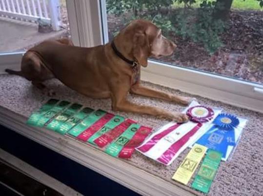 Honorable Mention: Gabby has been in the Top Ten Vizslas for Rally and